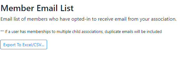 The Member Email list allows you to email all members who have opted - in to receive email from your association