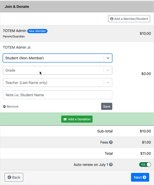 Every membership can include their student’s teacher and grade easily. This new feature will support classroom and grade level membership challenges. Each student has a dedicated field for their grade and teacher. No need to update the Teacher list, TOTEM will automagically build it as members join.