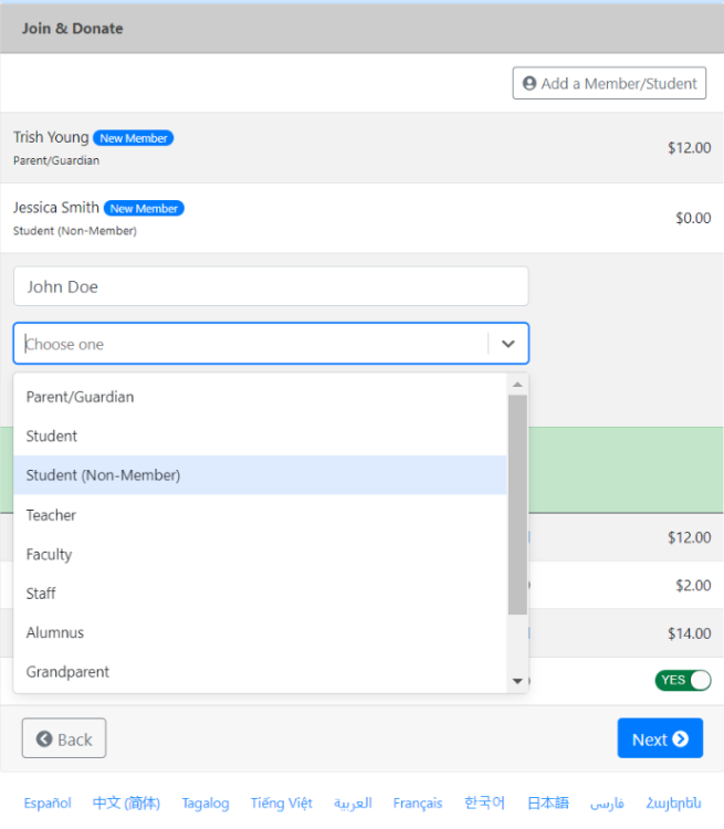 Once a member clicks on Add a Member, the member will be taken through the join flow to purchase a membership